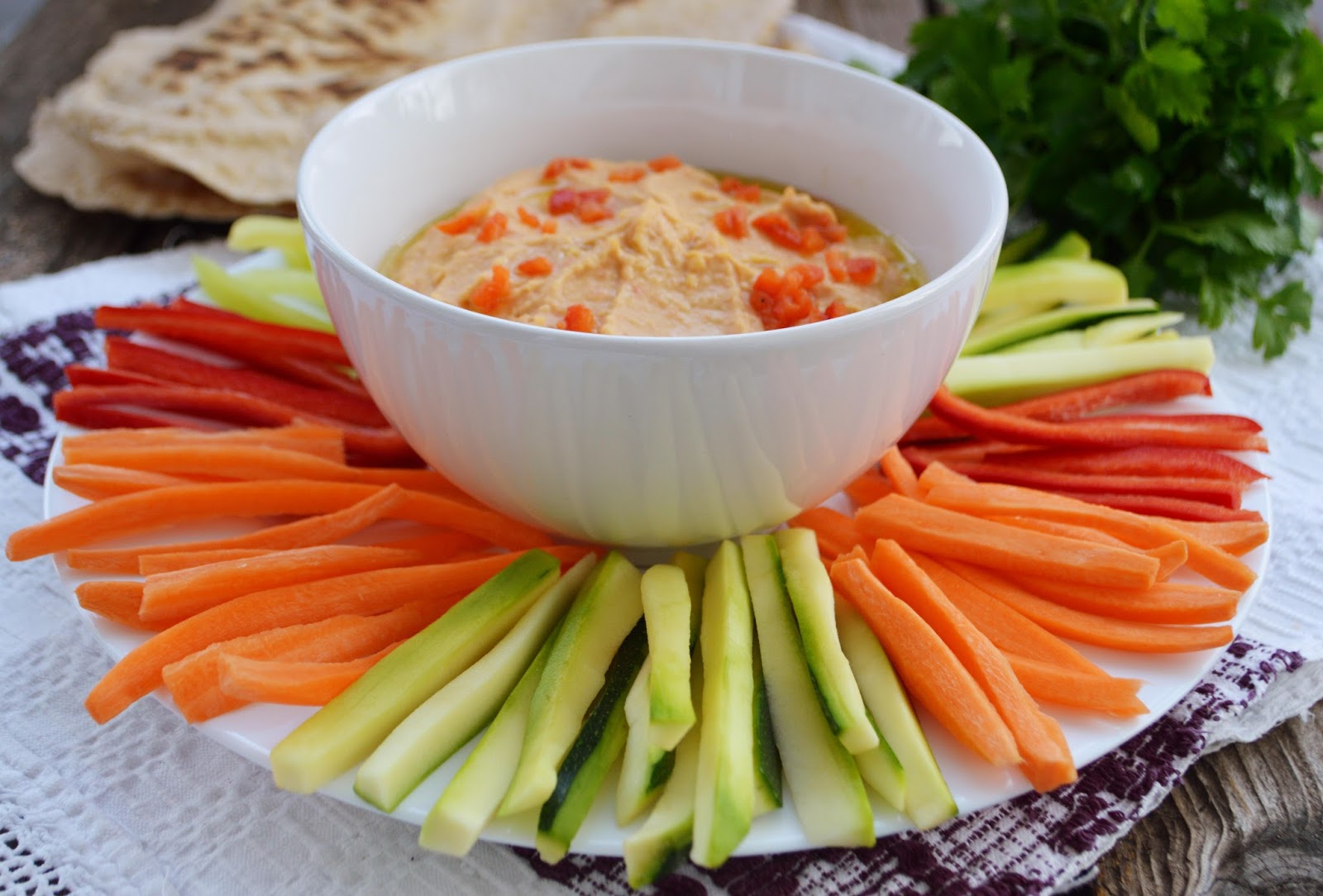 Îl servim cu legume crude (morcovi, zucchini, ardei gras roșu, ardei gras galben,castraveți ș.a.) tăiate în bastonașe și cu lipie la grătar.